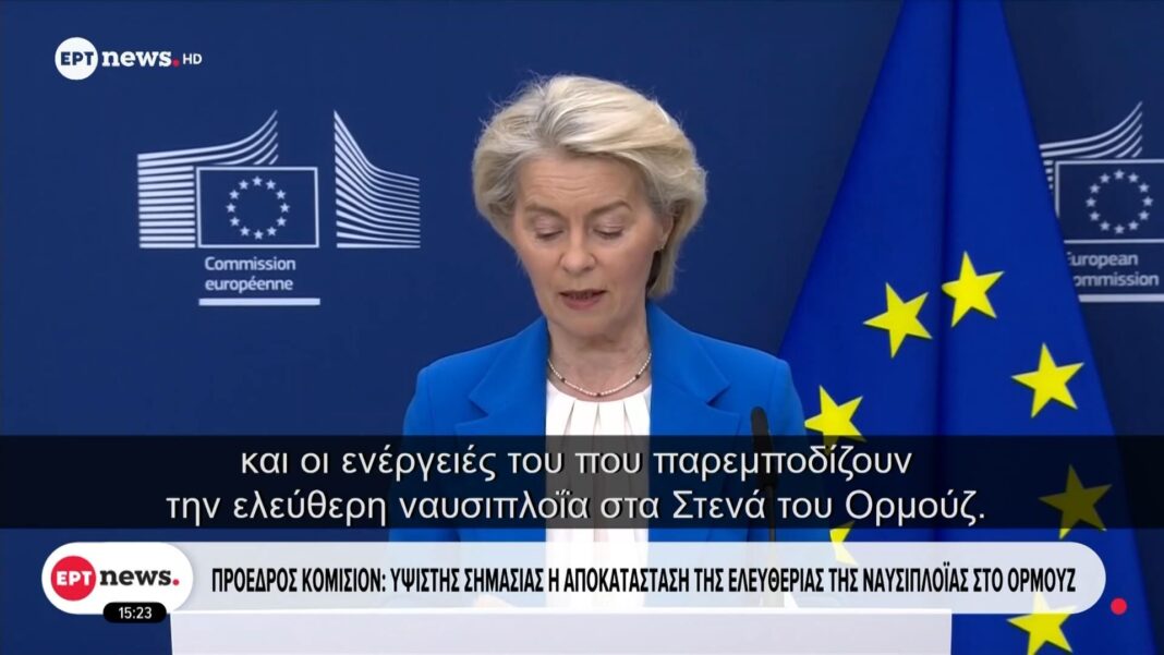 Η Πρόεδρος της Κομισιόν τόνισε τη σημασία της αποκατάστασης της ελευθερίας της ναυσιπλοΐας στο Στενό του Ορμούζ, υπογραμμίζοντας τις επιπτώσεις που έχει η κατάσταση στην παγκόσμια οικονομία. Η περιοχή αυτή αποτελεί κρίσιμο σημείο διέλευσης για το πετρέλαιο, και η ασφάλεια της ναυσιπλοΐας είναι ζωτικής σημασίας για την ενεργειακή σταθερότητα.