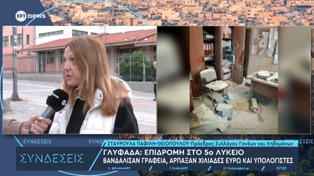 Έντονη ανησυχία έχει προκαλέσει ο πρόσφατος βανδαλισμός στο 5ο Γυμνάσιο και Λύκειο Γλυφάδας, με την πρόεδρο του Συλλόγου Γονέων και Κηδεμόνων, Σταυρούλα Παφίλη – Θειοπούλου, να εκφράζει την απογοήτευσή της για την κατάσταση. Στη συνέντευξή της, αναφέρθηκε στην ανάγκη για μεγαλύτερη προστασία των σχολικών υποδομών και στην ευθύνη της κοινότητας να συνεργαστεί για την αποτροπή τέτοιων περιστατικών στο μέλλον.