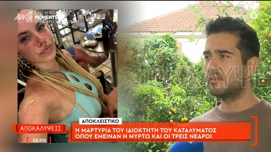 Ο ιδιοκτήτης του καταλύματος όπου διανυκτέρευσε η Μυρτώ μαζί με τους τρεις νεαρούς, μοιράζεται την εμπειρία του από εκείνες τις ημέρες. Περιγράφει τις εντυπώσεις του για τους επισκέπτες, τονίζοντας ότι δεν παρατήρησε τίποτα ασυνήθιστο κατά τη διάρκεια της παραμονής τους.
