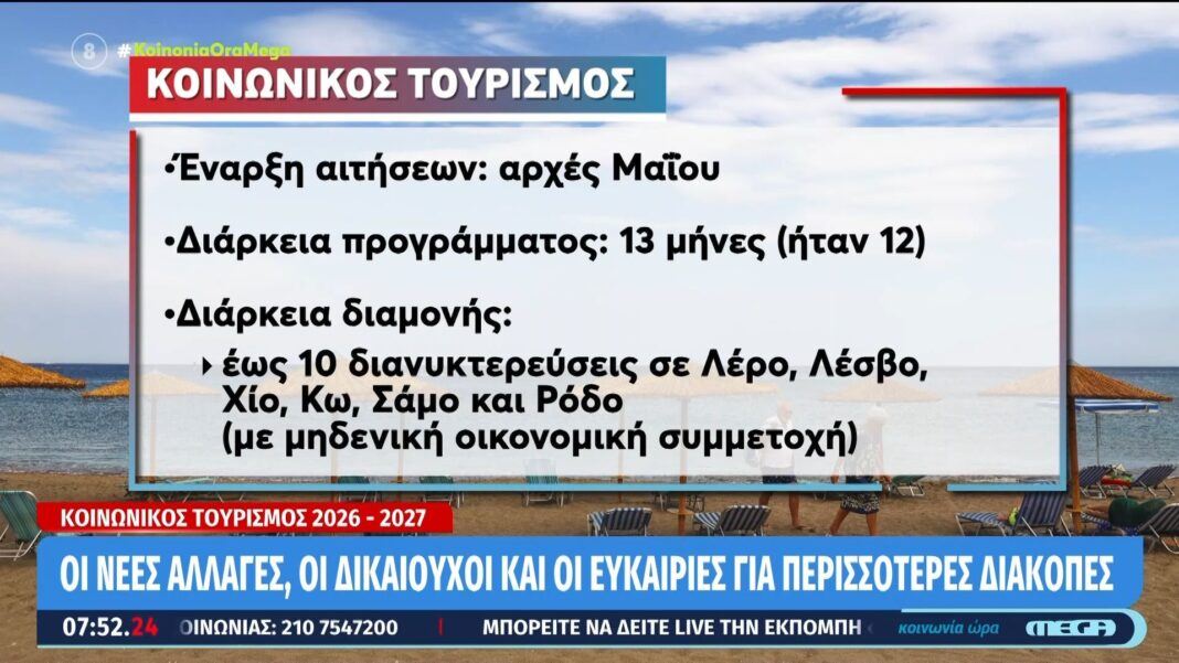Κοινωνικός τουρισμός 2026: Νέα voucher από τον Μάϊο – Οι δικαιούχοι και η έναρξη των αιτήσεων