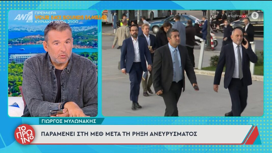 Ο Γιώργος Μυλωνάκης συνεχίζει να νοσηλεύεται στη Μονάδα Εντατικής Θεραπείας μετά από σοβαρή ρήξη ανευρύσματος. Οι ιατρικές του εξετάσεις δείχνουν ότι η κατάσταση της υγείας του παραμένει κρίσιμη, με τους γιατρούς να παρακολουθούν στενά την πρόοδό του.