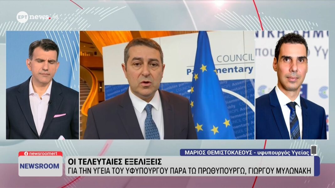 Ο υφυπουργός Υγείας, Μάριος Θεμιστοκλέους, παρέδωσε ενημέρωση σχετικά με την κατάσταση της υγείας του Γιώργου Μυλωνάκη. Σύμφωνα με τις τελευταίες πληροφορίες, η κατάσταση του είναι σταθερή, και οι γιατροί παρακολουθούν στενά την πρόοδό του.