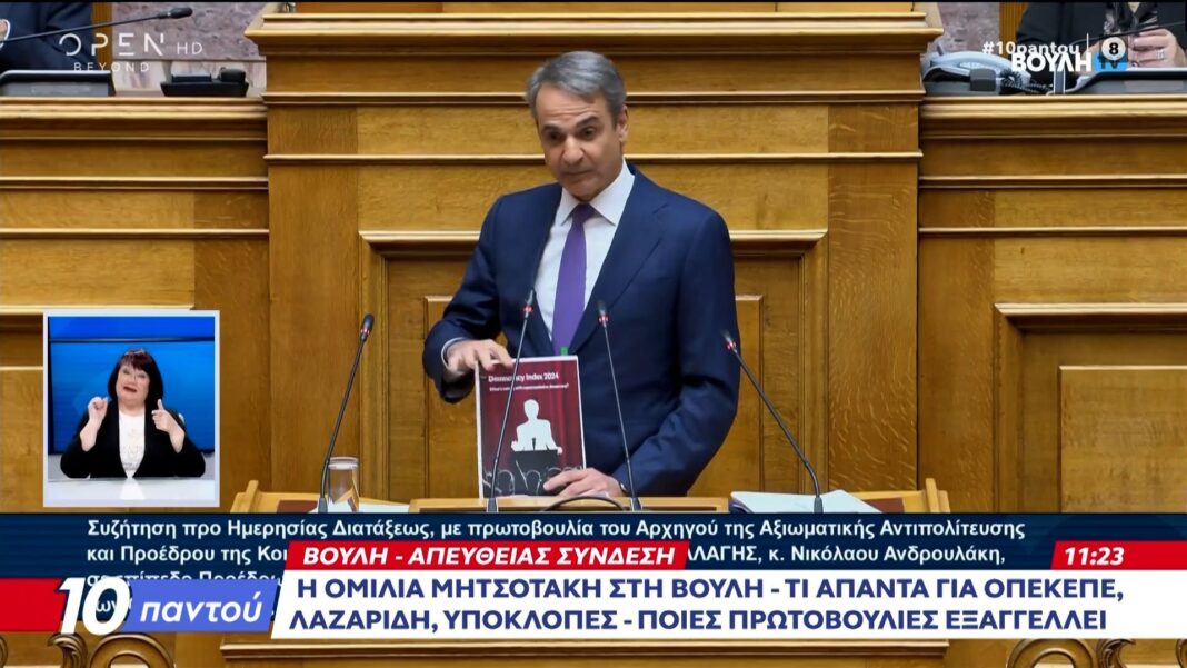 Σε εξέλιξη βρίσκεται η συζήτηση στην Ολομέλεια της Βουλής σχετικά με την κατάσταση του Κράτους Δικαίου και τη λειτουργία των θεσμών στην Ελλάδα. Ο πρωθυπουργός αναμένεται να αναφερθεί σε θεσμικές τομές που θα ενισχύσουν τη λειτουργία του πολιτικού συστήματος και θα απαντήσει στις κατηγορίες της αντιπολίτευσης.