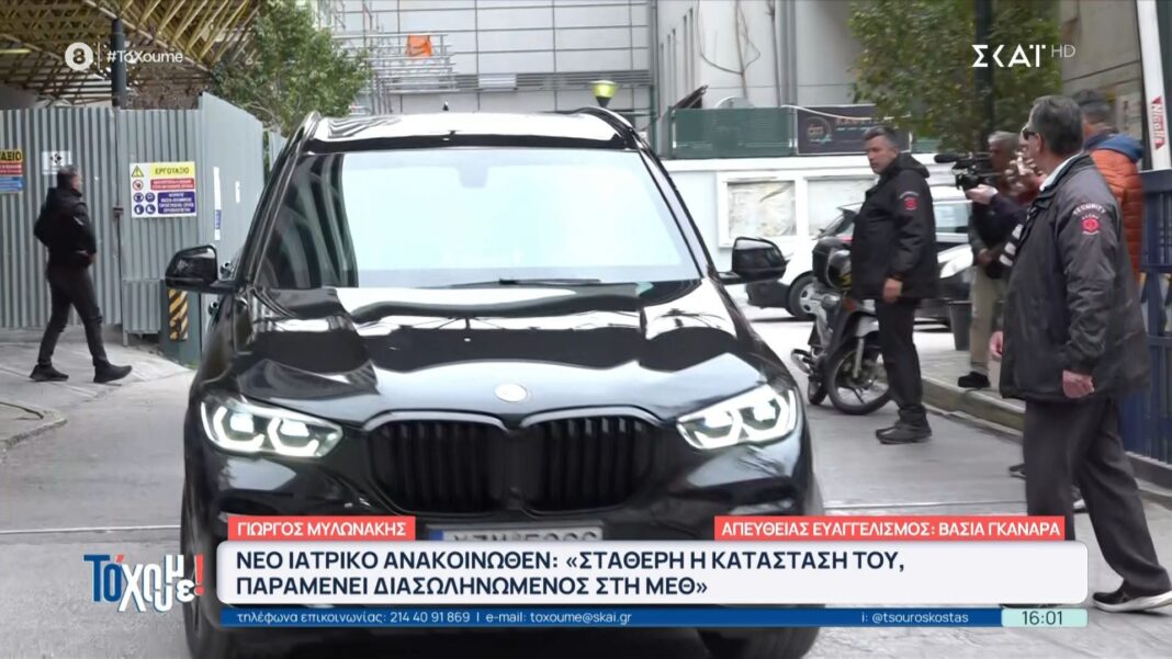 Ο Πρωθυπουργός Κυριάκος Μητσοτάκης επισκέφθηκε τον «Ευαγγελισμό» για να ενημερωθεί σχετικά με την κατάσταση της υγείας του Γιώργου Μυλωνάκη. Σύμφωνα με το τελευταίο ιατρικό ανακοινωθέν, η κατάσταση του παραμένει σταθερή, ενώ εξακολουθεί να είναι διασωληνωμένος στη Μονάδα Εντατικής Θεραπείας.