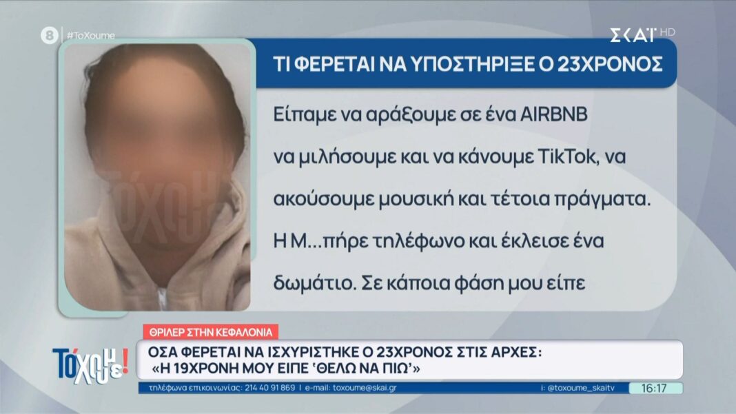Ο 23χρονος στην Κεφαλονιά ανέφερε στις Αρχές ότι η 19χρονη ζήτησε αλκοόλ πριν το περιστατικό, περιπλέκοντας την έρευνα γύρω από την υπόθεση.