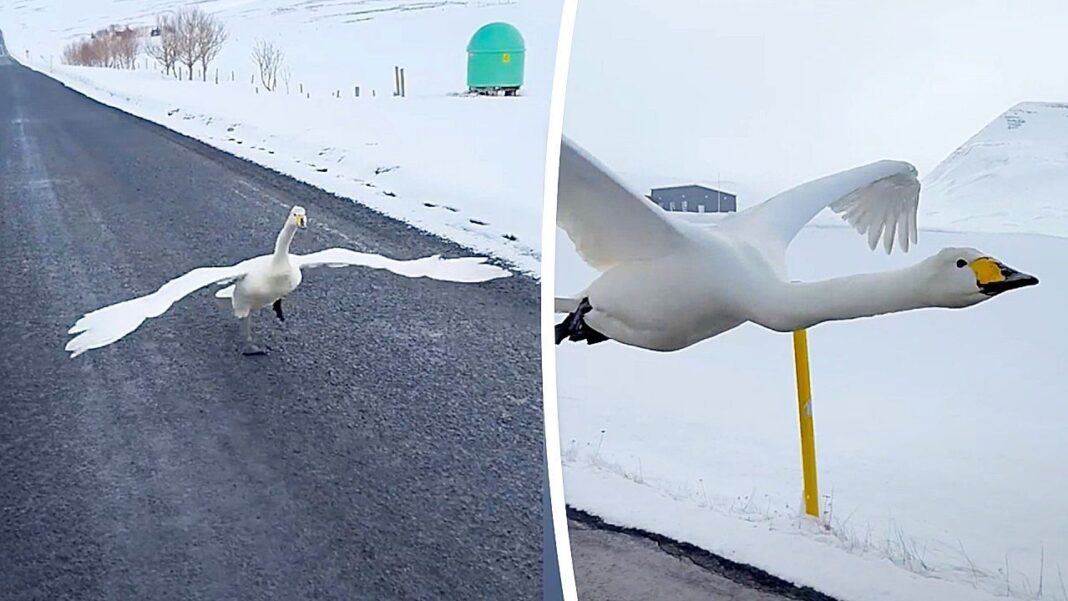Κύκνος απογειώνεται για να ακολουθήσει αυτοκίνητο