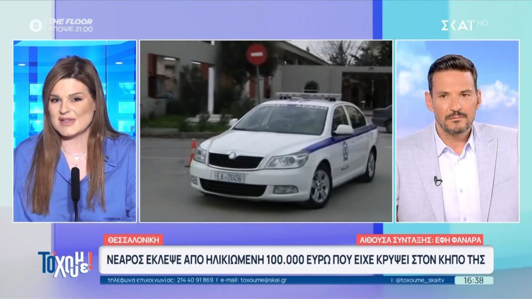 Ένας νεαρός άνδρας συνελήφθη στη Θεσσαλονίκη μετά από καταγγελία ηλικιωμένης που δήλωσε ότι της έκλεψε 100.000 ευρώ, τα οποία είχε κρύψει στον κήπο της. Ο δράστης, εκμεταλλευόμενος την αδυναμία της, μπήκε στην αυλή της και πήρε τα χρήματα από το μυστικό σημείο, προκαλώντας σοκ στην τοπική κοινότητα.