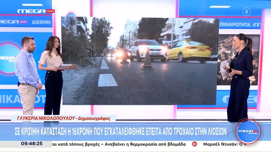 Μια 16χρονη κοπέλα βρίσκεται σε κρίσιμη κατάσταση μετά από σοβαρό τροχαίο που σημειώθηκε στη Λιοσίων. Το περιστατικό συνέβη το βράδυ της Τετάρτης, όταν το αυτοκίνητο στο οποίο επέβαινε συγκρούστηκε με άλλο όχημα, και ο οδηγός του δεύτερου οχήματος την εγκατέλειψε στο σημείο του ατυχήματος.
