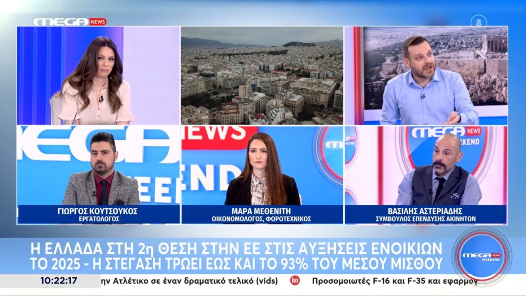 Η Ελλάδα κατέχει τη δεύτερη θέση στην Ευρωπαϊκή Ένωση όσον αφορά τις αυξήσεις ενοικίων το 2025, με τις τιμές να εκτοξεύονται σε ανησυχητικά επίπεδα. Οι ειδικοί αναφέρουν ότι η στέγαση απορροφά έως και το 93% του μέσου μισθού, καθιστώντας την οικονομική κατάσταση των νοικοκυριών ολοένα και πιο δύσκολη.