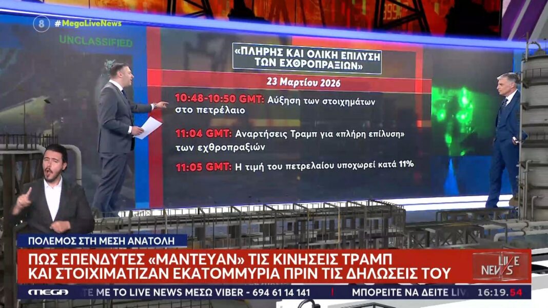 Επενδυτές σε όλο τον κόσμο φαίνεται να έχουν αναπτύξει μια στρατηγική για να “μαντεύουν” τις κινήσεις του πρώην προεδρικού υποψηφίου, Ντόναλντ Τραμπ, μέσω των στοιχημάτων τους στο πετρέλαιο. Πριν από σημαντικές δηλώσεις του, παρατηρούνται αυξημένα στοιχήματα εκατομμυρίων, υποδεικνύοντας μια προσεκτική παρακολούθηση των πολιτικών του κινήσεων και δηλώσεων.