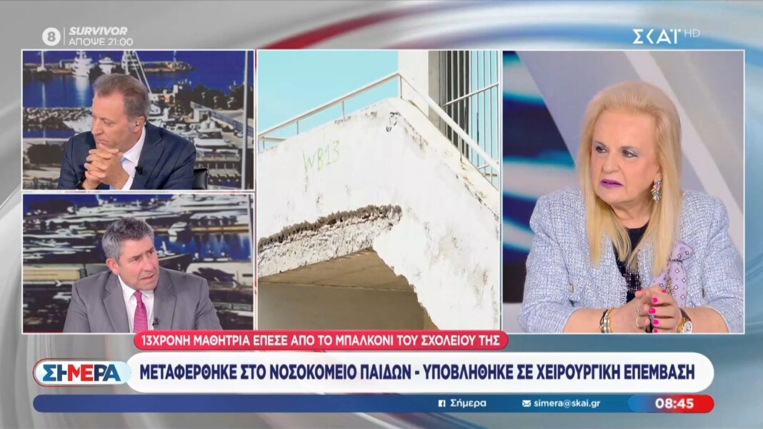 Η πρόεδρος της ΕΙΝΑΠ, Ματίνα Παγώνη, αναλύει τις ανησυχητικές εξελίξεις γύρω από την υπόθεση της 13χρονης που έπεσε από μπαλκόνι σχολείου στο Χαϊδάρι. Η Παγώνη επισημαίνει την ανάγκη για αυστηρότερες προφυλάξεις στα σχολεία και την ευθύνη των γονέων.