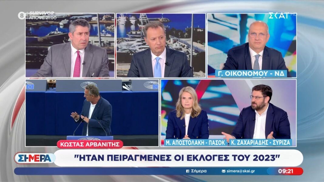 Ο Γ. Οικονόμου, η Μ. Αποστολάκη και ο Κ. Ζαχαριάδης στο “Σήμερα”