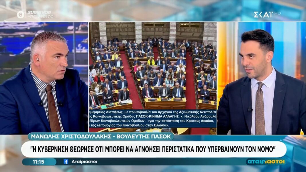 Ο Βουλευτής του ΠΑΣΟΚ, Μανώλης Χριστοδουλάκης, εξέφρασε σοβαρές ανησυχίες σχετικά με τις πρόσφατες κυβερνητικές αποφάσεις, τονίζοντας ότι η κυβέρνηση φαίνεται να αγνοεί περιστατικά που παραβιάζουν τον νόμο. Στη διάρκεια της συζήτησης στους «Αταίριαστους», υποστήριξε ότι αυτή η στάση ενδέχεται να έχει αρνητικές συνέπειες για τη δικαιοσύνη και την κοινωνία.
