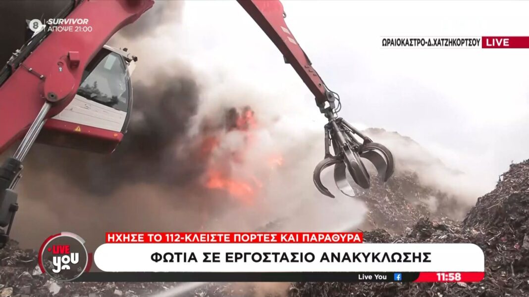 Φωτιά ξέσπασε σε εργοστάσιο ανακύκλωσης στη Θεσσαλονίκη, προκαλώντας ανησυχία στους κατοίκους της περιοχής. Οι πυροσβεστικές δυνάμεις κινητοποιήθηκαν άμεσα για την κατάσβεση της φωτιάς, ενώ οι λόγοι που προκάλεσαν το περιστατικό διερευνώνται.