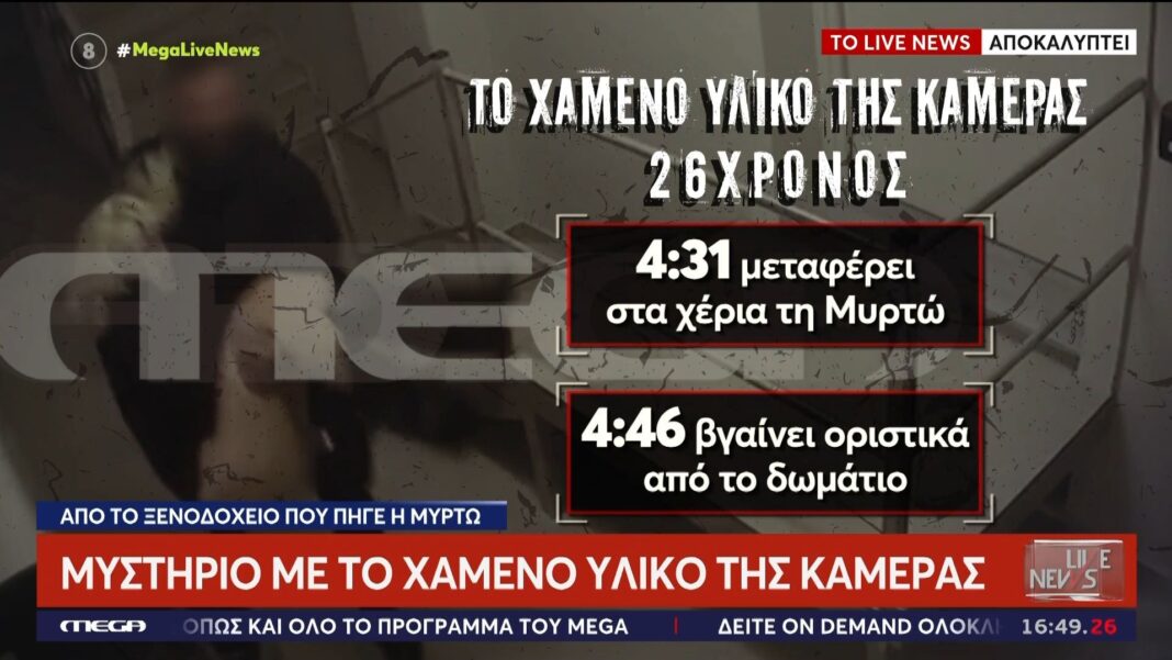 Οι αρχές ερευνούν την εξαφάνιση του υλικού από την κάμερα του ξενοδοχείου, σε κρίσιμη καμπή της υπόθεσης Μυρτώς, ενώ οι έρευνες επεκτείνονται.