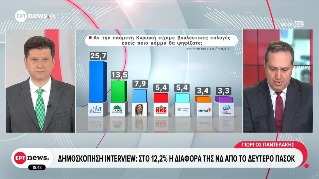 Δημοσκόπηση Interview: Στο 12,2 η διαφορά της ΝΔ από το δεύτερο ΠΑΣΟΚ