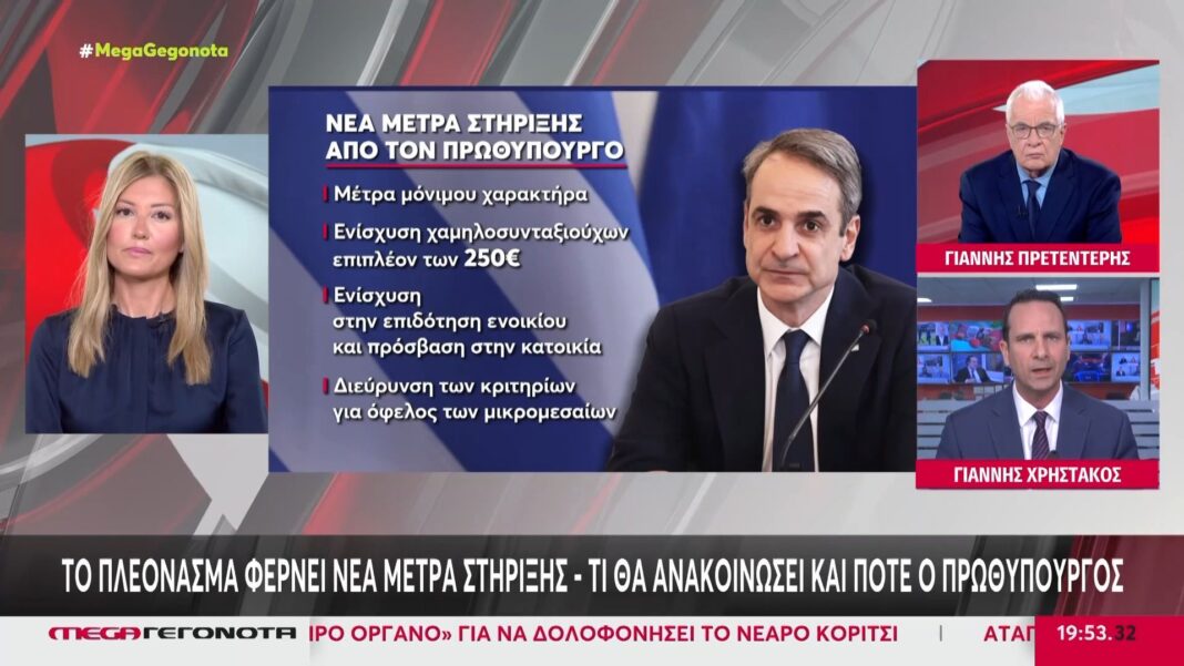Ο Πρωθυπουργός ανακοίνωσε νέα μέτρα στήριξης που έχουν στόχο την ενίσχυση των πολιτών και την τόνωση της οικονομίας. Οι προτάσεις περιλαμβάνουν οικονομικές επιδοτήσεις και φορολογικές ελαφρύνσεις, με στόχο την ανακούφιση των νοικοκυριών και των επιχειρήσεων.