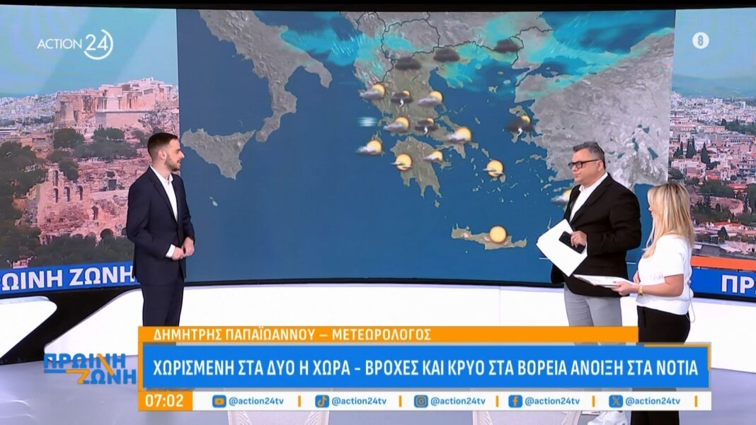 Οι βόρειες περιοχές αντιμετωπίζουν πτώση θερμοκρασίας και βροχές, ενώ οι νότιες απολαμβάνουν ήλιο και ζέστη, προσκαλώντας σε εξωτερικές δραστηριότητες.