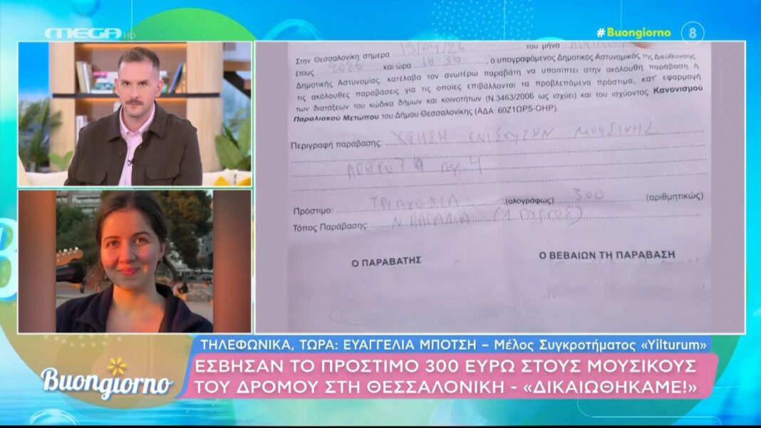 Η Ευαγγελία Μπότση, μέλος του συγκροτήματος «Yilturum», αναφέρεται στο πρόστιμο των 300 ευρώ που επιβλήθηκε στους μουσικούς του δρόμου στη Θεσσαλονίκη. Στην παρέμβασή της, τονίζει την αδικία αυτής της απόφασης και την ανάγκη υποστήριξης των καλλιτεχνών που προσφέρουν ψυχαγωγία στους πολίτες.