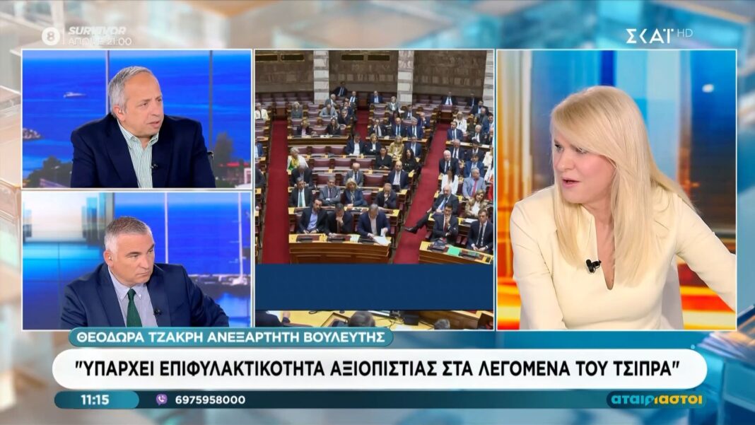 Η Θοδώρα Τζάκρη, μιλώντας στους Αταίριαστους, ξεκαθάρισε τη θέση της στην πολιτική σκηνή, δηλώνοντας ότι παραμένει μέλος των Δημοκρατών. Ανέφερε ότι δεν έχει αλλάξει κόμμα και ρώτησε αν υπάρχουν πληροφορίες που να την αφορούν διαφορετικά.