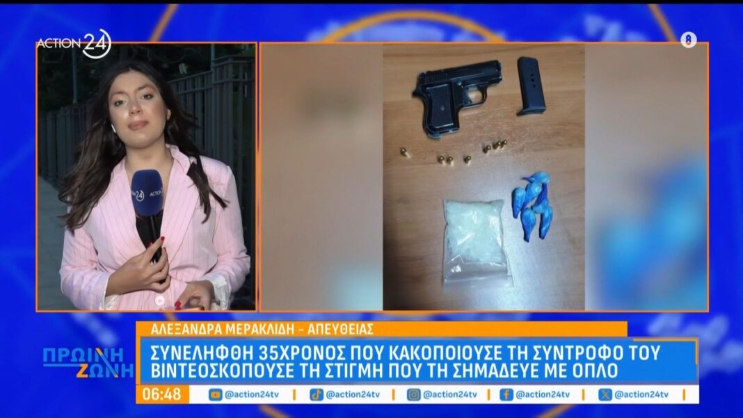Στη διάρκεια αστυνομικής επιχείρησης, συνελήφθη ένας 35χρονος άνδρας ο οποίος κατηγορείται για κακοποίηση της συντρόφου του. Οι αρχές εντόπισαν αποδεικτικά στοιχεία που δείχνουν ότι ο δράστης βιντεοσκοπούσε τις απειλητικές του ενέργειες, κατά τη διάρκεια των οποίων την σημάδευε με όπλο.