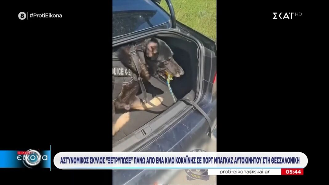 Αστυνομικός σκύλος στην Θεσσαλονίκη εντόπισε πάνω από ένα κιλό κοκαΐνης κρυμμένο στο πορτ μπαγκάζ αυτοκινήτου κατά τη διάρκεια ελέγχου. Η επιχείρηση πραγματοποιήθηκε σε συνεργασία με τις τοπικές αρχές, οι οποίες έχουν εντείνει τις προσπάθειές τους για την καταπολέμηση της διακίνησης ναρκωτικών στην περιοχή.