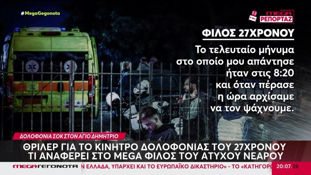 Ο φίλος του θύματος μίλησε στο MEGA και αποκάλυψε λεπτομέρειες για τη ζωή του άτυχου νεαρού, προσπαθώντας να κατανοήσει τι οδήγησε σε αυτή την τραγωδία. Η κοινότητα παρακολουθεί με αγωνία τις εξελίξεις, καθώς οι αρχές επιδιώκουν να φέρουν τους υπευθύνους ενώπιον της δικαιοσύνης.