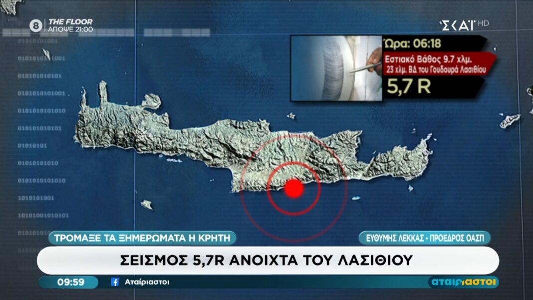 Σεισμός 5,7 Ρίχτερ σημειώθηκε κοντά στο Λασίθι, προκαλώντας ανησυχία στους κατοίκους της Κρήτης τα ξημερώματα. Αρχές σε επιφυλακή για μετασεισμούς.