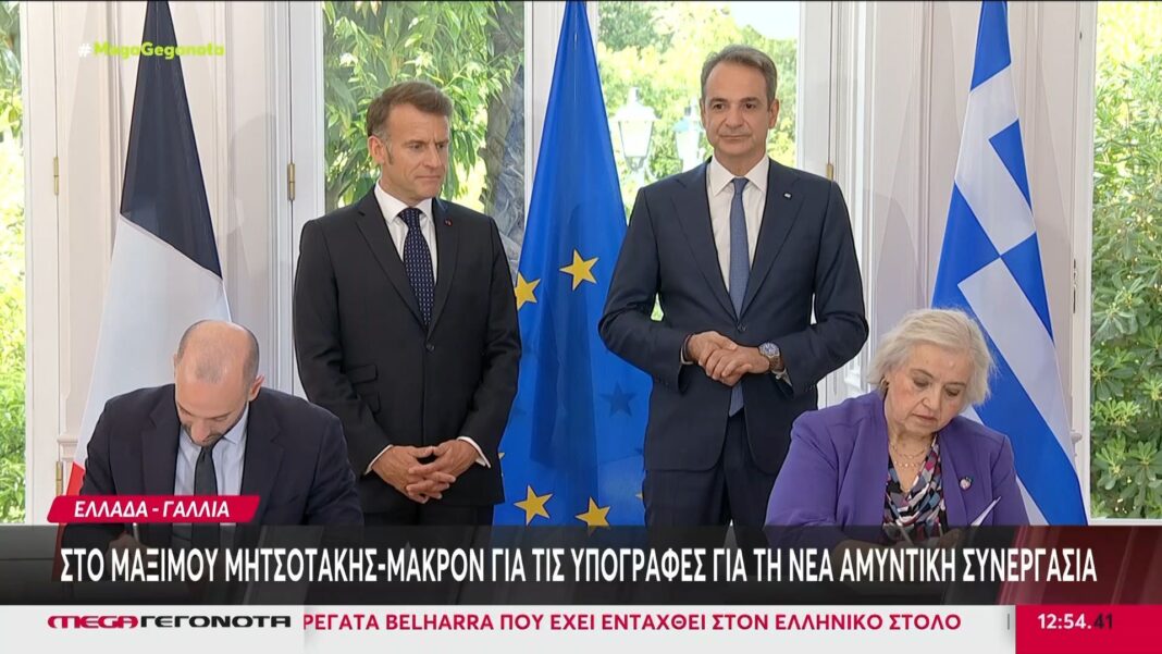 Ο Κυριάκος Μητσοτάκης και ο Εμανουέλ Μακρόν συναντήθηκαν στο Μέγαρο Μαξίμου για να υπογράψουν τη νέα αμυντική συνεργασία μεταξύ Ελλάδας και Γαλλίας. Η συμφωνία αυτή ενισχύει τη στρατηγική συμμαχία των δύο χωρών και προάγει την ασφάλεια στην ευρύτερη περιοχή.