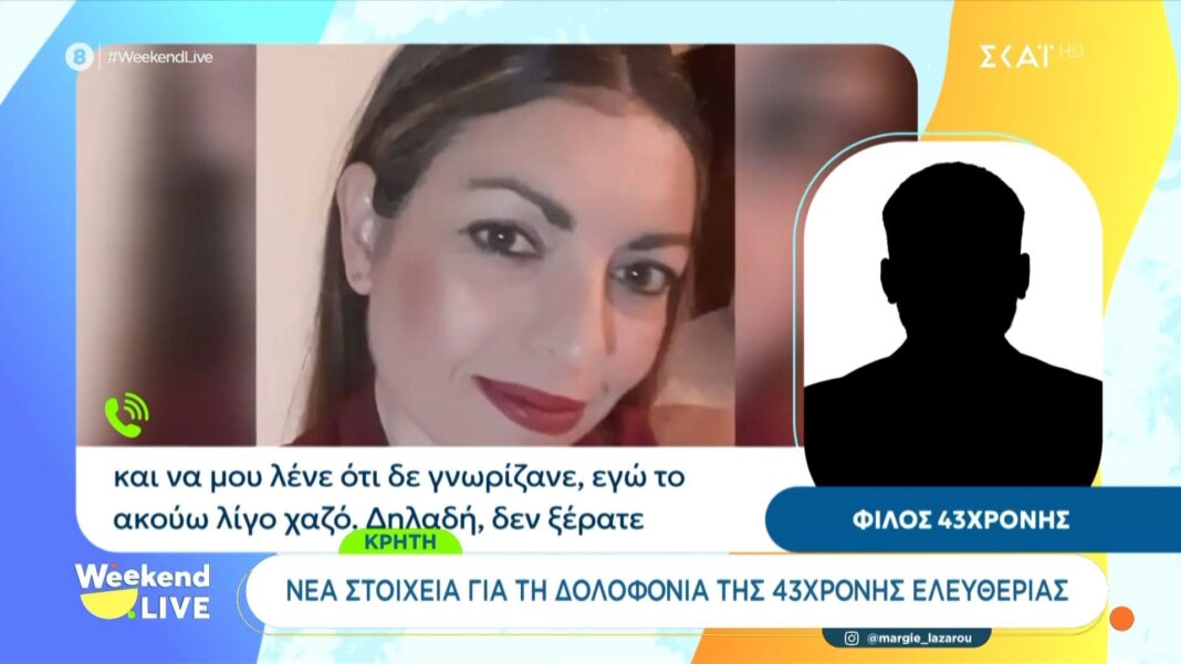 Φίλος της 43χρονης γυναίκας που δολοφονήθηκε στην Κρήτη αποκάλυψε ότι ο δράστης είχε επιστρέψει την Παρασκευή από τη δουλειά και αναζητούσε την Ελευθερία. Η κατάσταση φαίνεται να είχε κλιμακωθεί, με τον φίλο να εκφράζει την ανησυχία του για την ασφάλεια της.