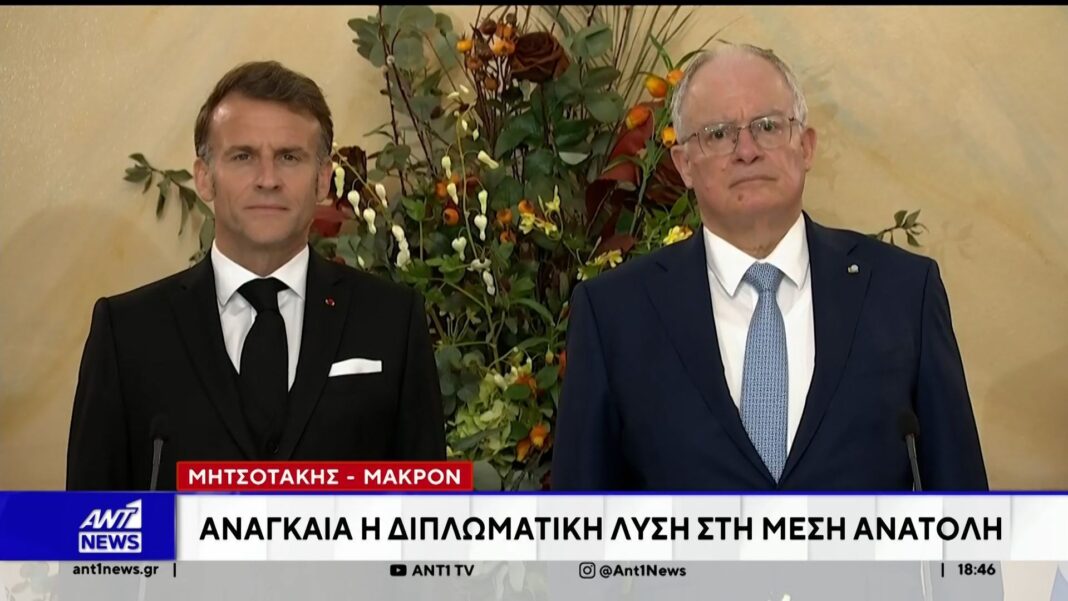Ο Έλληνας Πρωθυπουργός, Κυριάκος Μητσοτάκης, εξέφρασε την ευγνωμοσύνη του προς τον Γάλλο Πρόεδρο, Εμανουέλ Μακρόν, για την υποστήριξή του, τονίζοντας ότι οι δηλώσεις του αγγίζουν τις καρδιές των Ελλήνων. Ο Μακρόν επανέλαβε τη δέσμευση της Γαλλίας να βρίσκεται στο πλευρό της Ελλάδας, αναφέροντας ότι η ρήτρα αμοιβαίας συνδρομής είναι αδιαπραγμάτευτη.