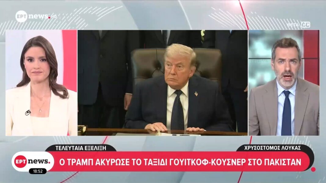 Ο πρώην Πρόεδρος των Ηνωμένων Πολιτειών, Ντόναλντ Τραμπ, ανακοίνωσε την ακύρωση του προγραμματισμένου ταξιδιού των Γουίτκοφ και Κούσνερ στο Πακιστάν. Οι λόγοι πίσω από αυτή την απόφαση παραμένουν ασαφείς, ωστόσο, πηγές αναφέρουν ότι σχετίζονται με τρέχουσες πολιτικές εξελίξεις και διαβουλεύσεις.