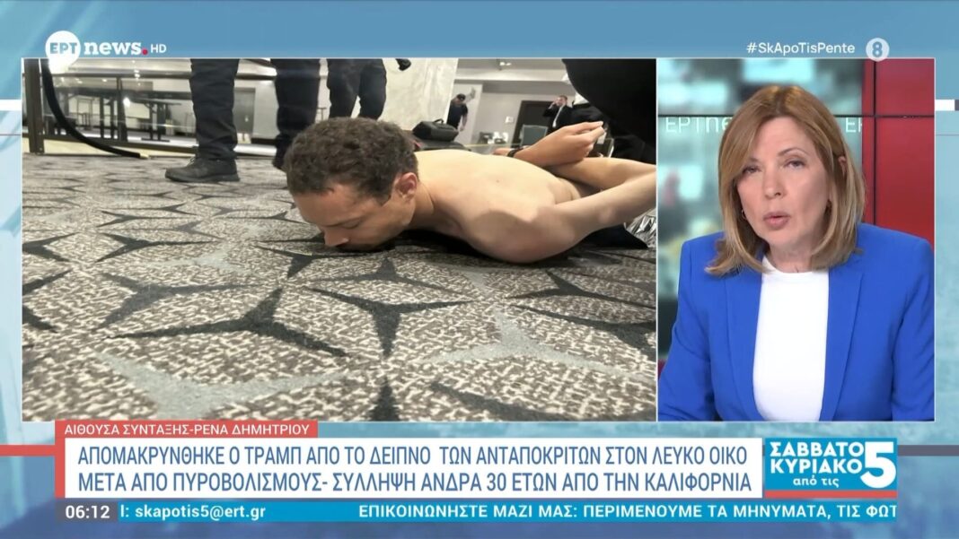 Η επίθεση στον Λευκό Οίκο προκάλεσε πανικό, ενώ ο Ντόναλντ Τραμπ απομακρύνθηκε άμεσα από τις αρχές. Διερευνώνται τα κίνητρα του συλληφθέντος δράστη.