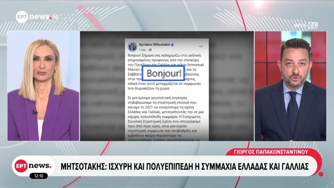 Ο Πρωθυπουργός Κυριάκος Μητσοτάκης τόνισε τη σημασία της στρατηγικής συνεργασίας μεταξύ Ελλάδας και Γαλλίας, χαρακτηρίζοντας τη συμμαχία τους ισχυρή και πολυδιάστατη. Ανέφερε ότι οι δύο χώρες συνεργάζονται σε κρίσιμους τομείς, όπως η άμυνα, η οικονομία και η ενέργεια, ενισχύοντας τη σταθερότητα στην περιοχή.