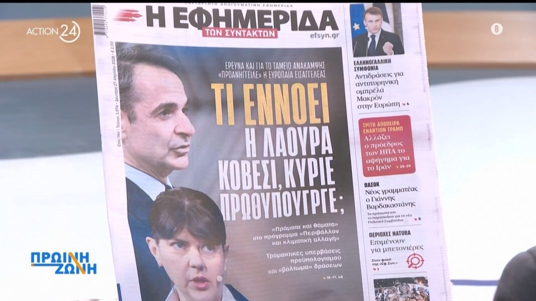 Σήμερα παρουσιάζονται τα πρωτοσέλιδα των εφημερίδων που κυκλοφόρησαν στις 27 Απριλίου. Οι τίτλοι καλύπτουν σημαντικά πολιτικά, οικονομικά και κοινωνικά θέματα, προσφέροντας μια συνοπτική ματιά στην τρέχουσα κατάσταση της χώρας.