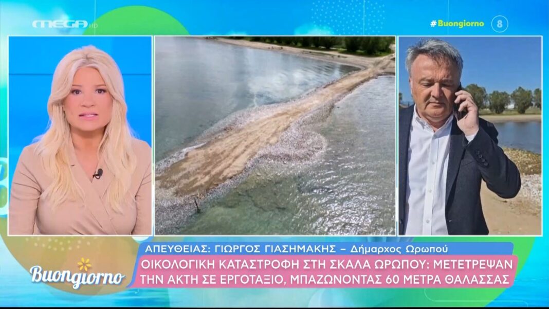Ο Δήμαρχος Γιώργος Γιασημάκης ζητά άμεση αποκατάσταση της παραλίας στη Σκάλα Ωρωπού λόγω οικολογικής καταστροφής από παράνομα έργα μπαζώματος.