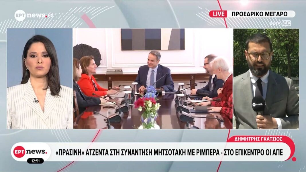 Ο Κυριάκος Μητσοτάκης συναντήθηκε με τον Ισπανό υπουργό Περιβάλλοντος, Ριμπέρα, σε μια συνάντηση που επικεντρώθηκε στην προώθηση των Ανανεώσιμων Πηγών Ενέργειας (ΑΠΕ). Οι δύο ηγέτες τόνισαν τη σημασία της βιωσιμότητας και των πράσινων πολιτικών για την αντιμετώπιση της κλιματικής αλλαγής.