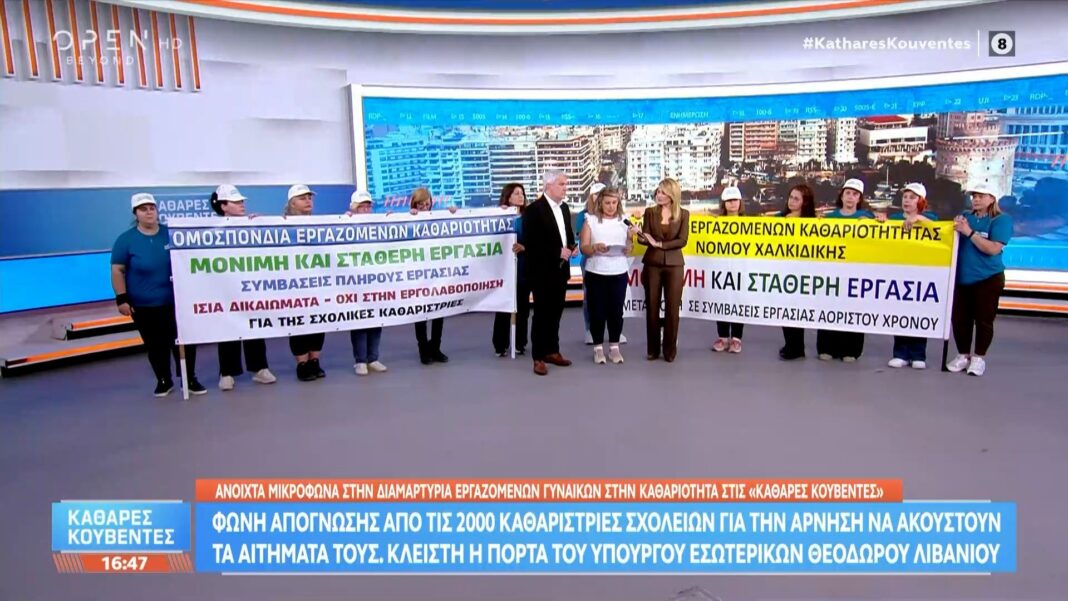 Στην Αθήνα σήμερα, καθαρίστριες διεκδικούν μόνιμη απασχόληση και αναγνώριση της προσφοράς τους, τονίζοντας την αβεβαιότητα και τις δύσκολες εργασιακές συνθήκες.