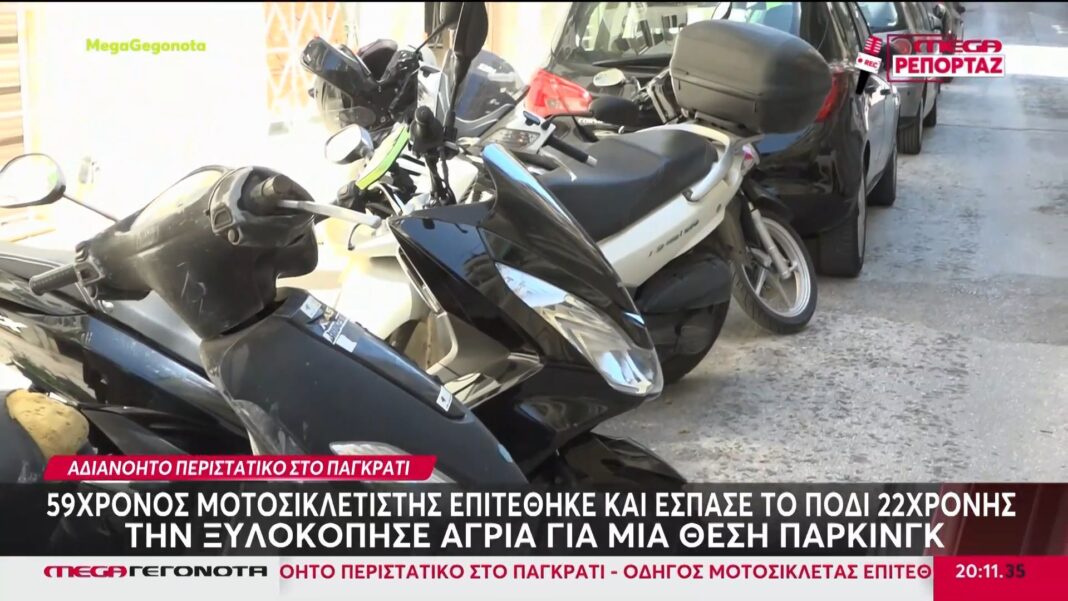Μια 22χρονη φοιτήτρια υπήρξε θύμα βίαιης επίθεσης από οδηγό μοτοσικλέτας στο Παγκράτι, καθώς προσπαθούσε να παρκάρει το αυτοκίνητό της. Ο δράστης, που ταυτοποιήθηκε από τις αρχές, την χτύπησε στο πρόσωπο και την άφησε τραυματισμένη, με το πόδι της σε νάρθηκα.