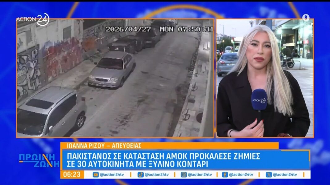 Σοβαρό επεισόδιο σημειώθηκε στην Αθήνα, όταν 29χρονος άνδρας σε κατάσταση αμόκ προκάλεσε εκτενείς ζημιές σε 30 οχήματα. Ο δράστης χρησιμοποίησε ένα ξύλινο κοντάρι για να χτυπήσει τα αυτοκίνητα, προκαλώντας ανησυχία στους κατοίκους της περιοχής.