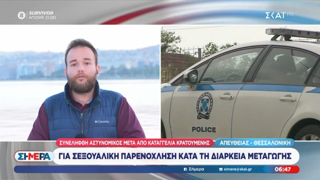 Αστυνομικός στη Θεσσαλονίκη συνελήφθη κατηγορούμενος για σεξουαλική παρενόχληση κρατούμενης κατά τη διάρκεια μεταγωγής της. Σύμφωνα με πληροφορίες, η κρατούμενη υπέβαλε καταγγελία, η οποία οδήγησε σε άμεσες ενέργειες από τις αρχές.