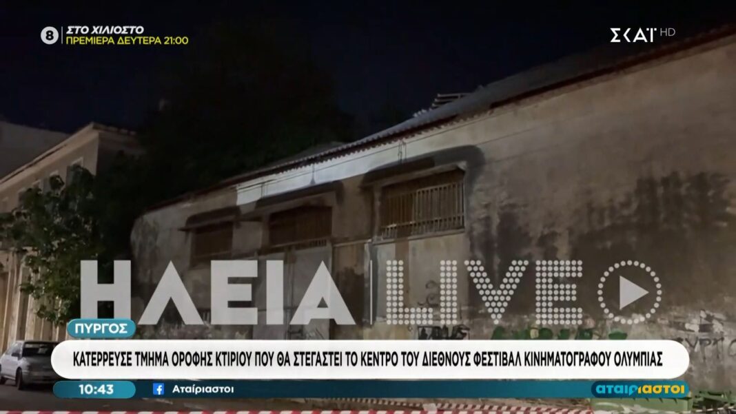 Πύργος: Κατέρρευσε τμήμα οροφής κτιρίου που θα στεγαστεί το κέντρο του διεθνούς φεστιβάλ κινηματογράφου Ολυμπίας