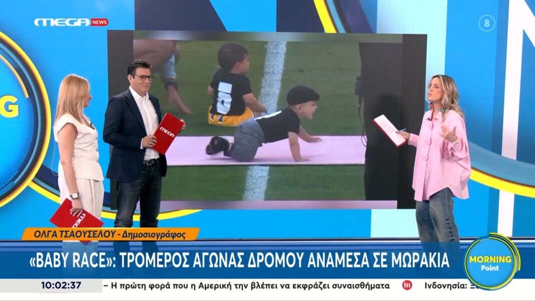 Στο Λος Άντζελες, διοργανώνεται ένας ιδιαίτερος αγώνας δρόμου, όπου συμμετέχουν μωράκια, προκαλώντας ενθουσιασμό στους θεατές. Οι γονείς ενθαρρύνουν τα παιδιά τους να “αγωνιστούν” με χαριτωμένες κινήσεις, προσφέροντας μια μοναδική εμπειρία που συνδυάζει διασκέδαση και οικογενειακή ατμόσφαιρα.