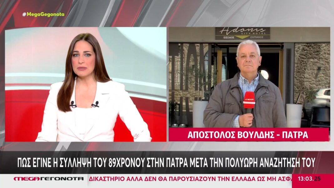 Στην Πάτρα, οι αρχές προχώρησαν στη σύλληψη ενός 89χρονου άνδρα ύστερα από πολύωρη αναζήτησή του. Ο ηλικιωμένος είχε εξαφανιστεί υπό αδιευκρίνιστες συνθήκες, προκαλώντας ανησυχία στην τοπική κοινότητα και την κινητοποίηση των αρχών.