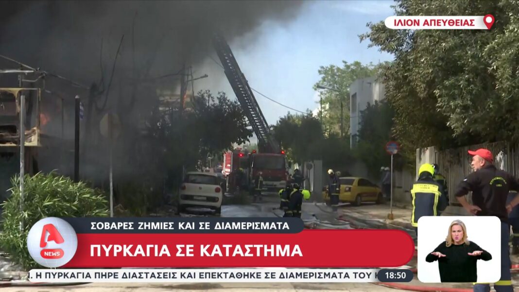 Μεγάλη φωτιά ξέσπασε σε κατάστημα με ανταλλακτικά στο Ίλιον, προκαλώντας σοβαρές ζημιές σε γειτονικές πολυκατοικίες. Η φωτιά επεκτάθηκε γρήγορα στα διαμερίσματα των άλλων ορόφων, κινητοποιώντας άμεσα την Πυροσβεστική Υπηρεσία.