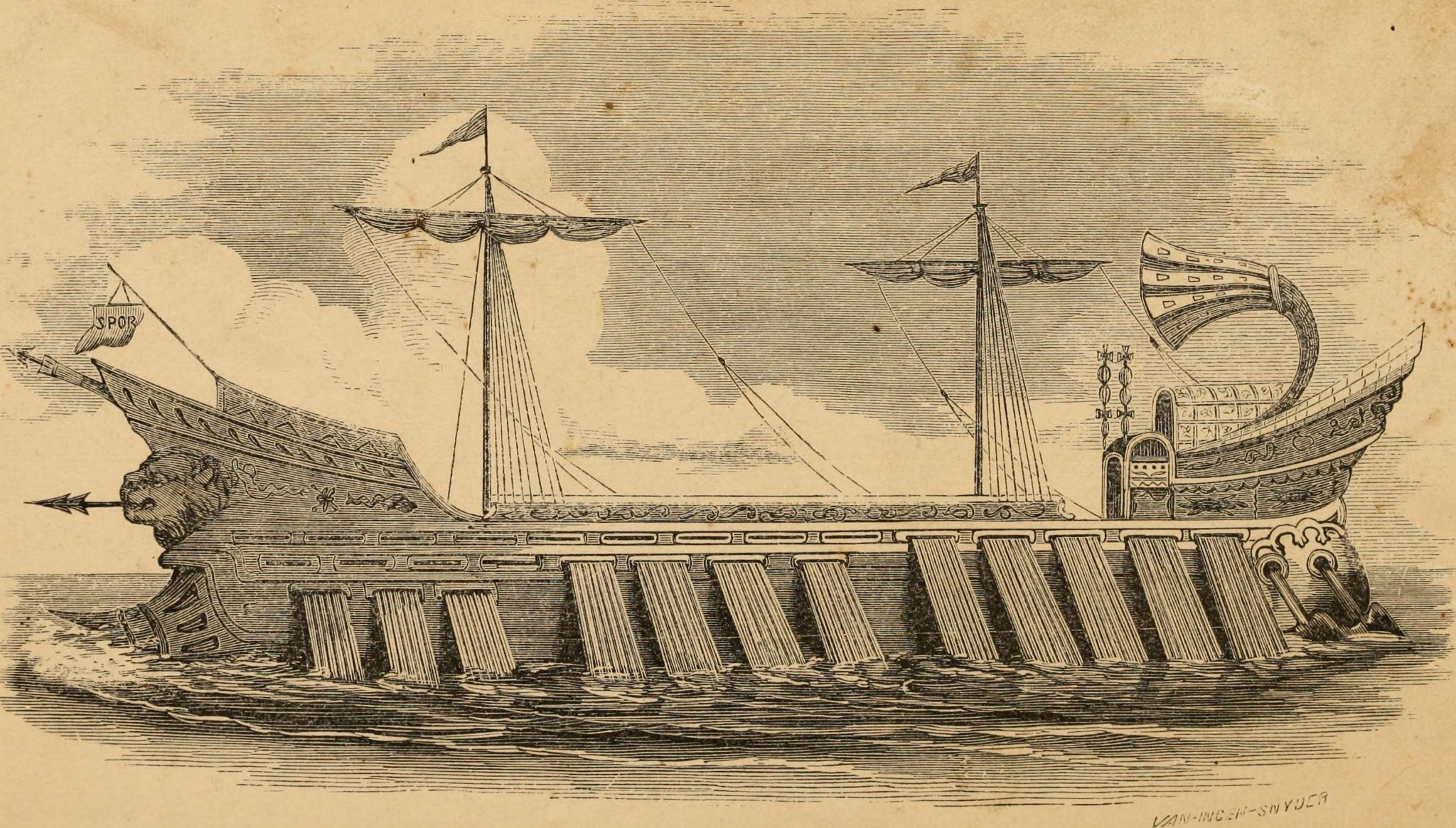 Το ίδιο διαπιστώνεται από τα ρωμαϊκά ανάγλυφα τα οποία ποτέ δεν εικονίζουν πλοία με περισσότερες από τρεις οριζόντιες σειρές κουπιών.
