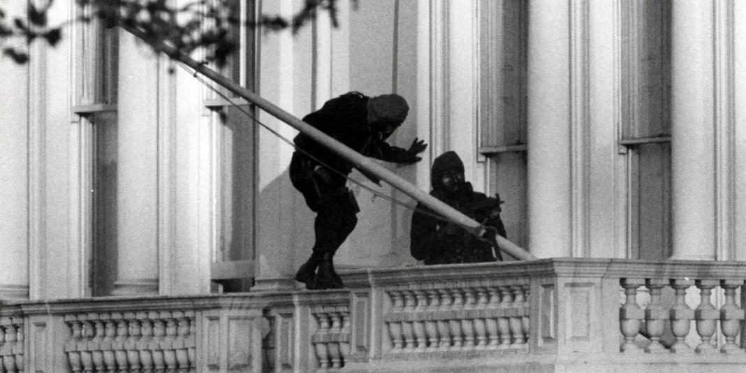 Κάπου 35 κομάντος όρμησαν στο κτίριο της πρεσβείας και ό,τι εκτυλίχθηκε στα επόμενα 17 λεπτά παρακολουθήθηκε ζωντανά στην τηλεόραση από εκατομμύρια ανθρώπους:
