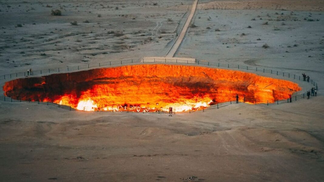 Στην έρημο Καρακούμ του Τουρκμενιστάν, ένα ανθρώπινο σφάλμα κατά την εξόρυξη πετρελαίου δημιούργησε έναν εντυπωσιακό κρατήρα, γνωστό ως «Πύλη της Κολάσεως».