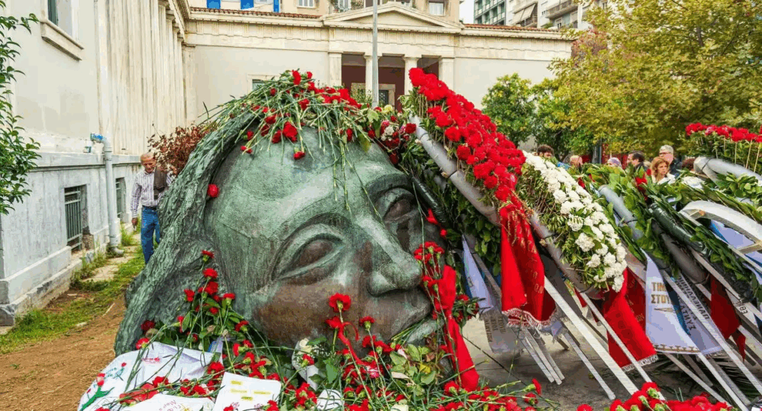 Πολυτεχνείο: Ποιος είναι ο ιδιοκτήτης της κεφαλής στο προαύλιο της Σχολής όπου καταθέτουν λουλούδια στην επέτειο;