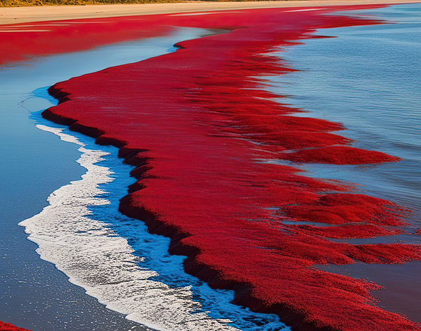 Στο νησί Ορμούζ του Ιράν, ένα σπάνιο φυσικό φαινόμενο εντυπωσίασε τους επισκέπτες της Κόκκινης Παραλίας, καθώς η βροχή προκάλεσε το νερό της θάλασσας να βαφτεί κόκκινο. Το φαινόμενο αυτό οφείλεται στα υψηλά επίπεδα οξειδίου του σιδήρου στο έδαφος του νησιού, που μετατρέπουν την άμμο και το νερό σε ένα έντονο πορφυρό χρώμα, δημιουργώντας μοναδικές εικόνες.